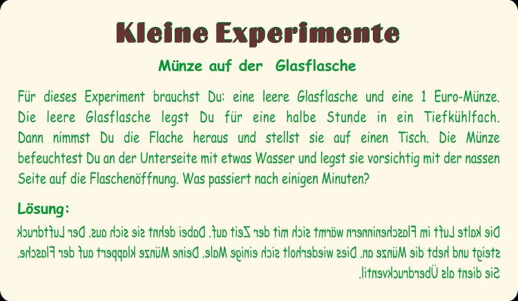 Mit kleinen Experimenten möchte ich Dich künftig ein wenig verblüffen.