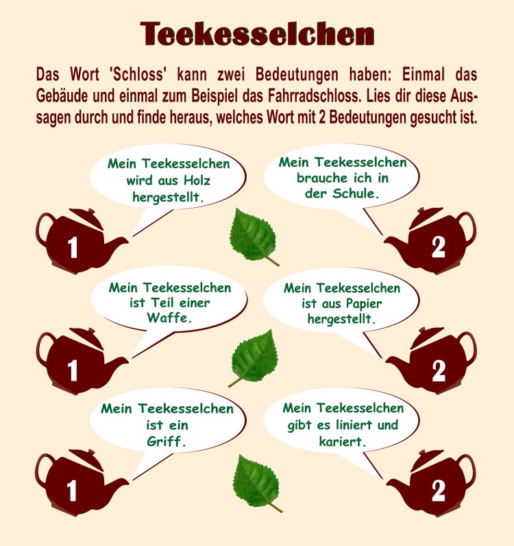 Kaum zu glauben, denn das Spiel vertreibt nicht nur die Zeit, sondern trainiert auch das Gehirn. Aber das weiß ja jeder! - Es gab wohl früher ein Spiel, „da hat man die Lösung in einen Teekessel gelegt, wie in eine Art „Geheimort“. Vielleicht kommt der Name auch daher“, meint die Maus vom WDR.